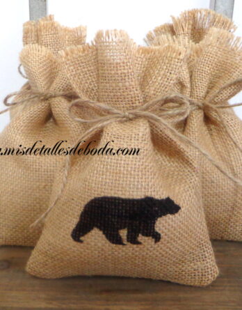 Saco de arpillera pintado oso pardo 11cm x 17cm