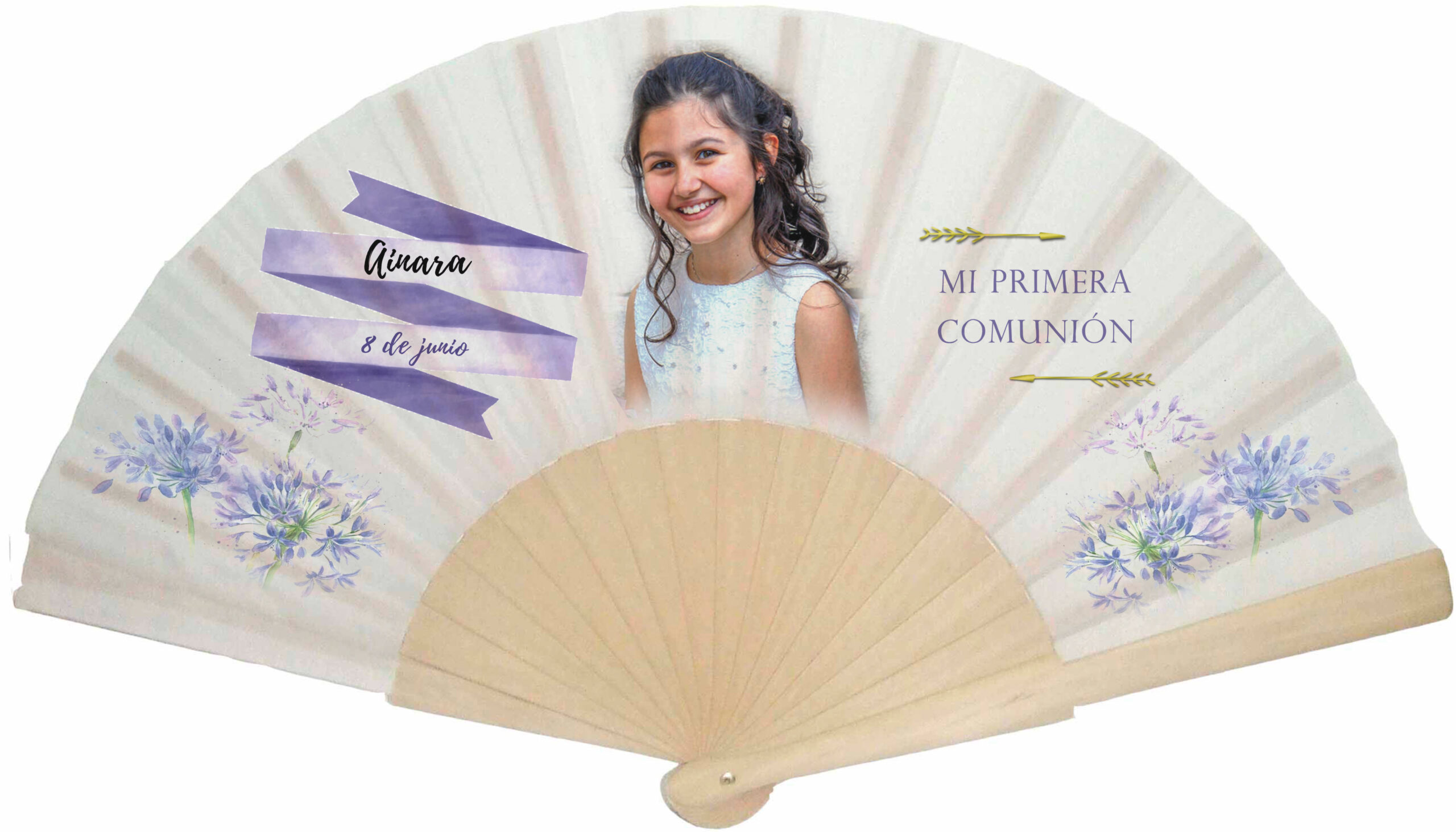 Sorprenda los invitados de su comunión con este abanico personalizado con foto.