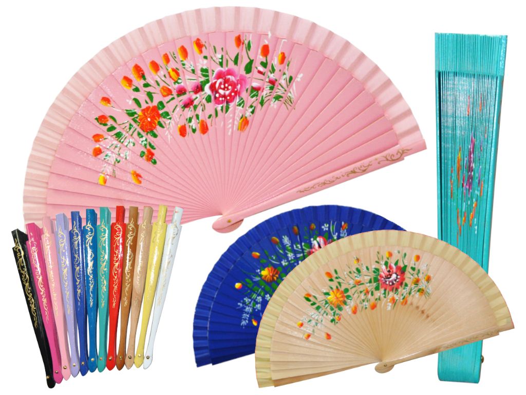 Abanico de madera y tela 23cm