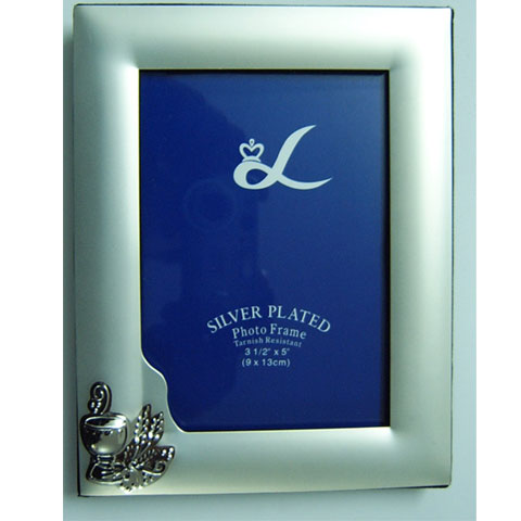 Portafoto comunión plateado con cristal.
