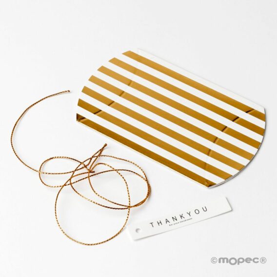 Cajita rayas doradas o plateadas con tarjeta y cuerda