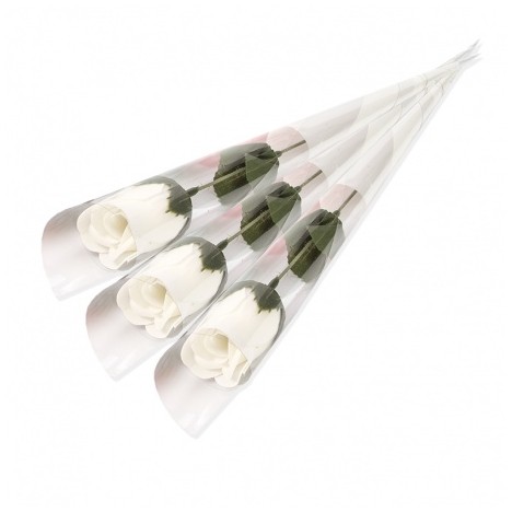 Graciosa rosa de jabón color blanco en embalaje de acetato transparente para recuerdo de invitados de boda bautizo y comunión