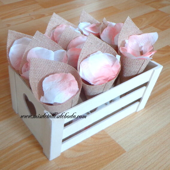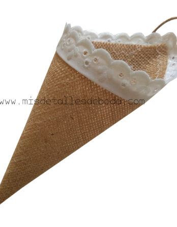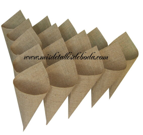 Original cono de tela de yute (arpillera) para poner pétalos, arroz o flores secas.