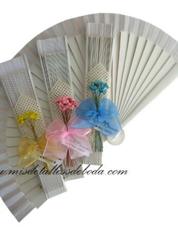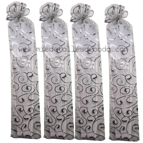 Fundas de organza con dibujos en color plata para decorar y presentar abanicos