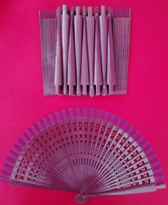 Ultimo lote disponible de 12 abanicos de madera y tela 19cm Madera troquelada Color lila como la foto