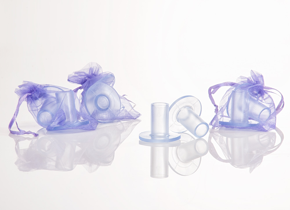 Util y elegante protector de tacones en bolsita de tull lila.