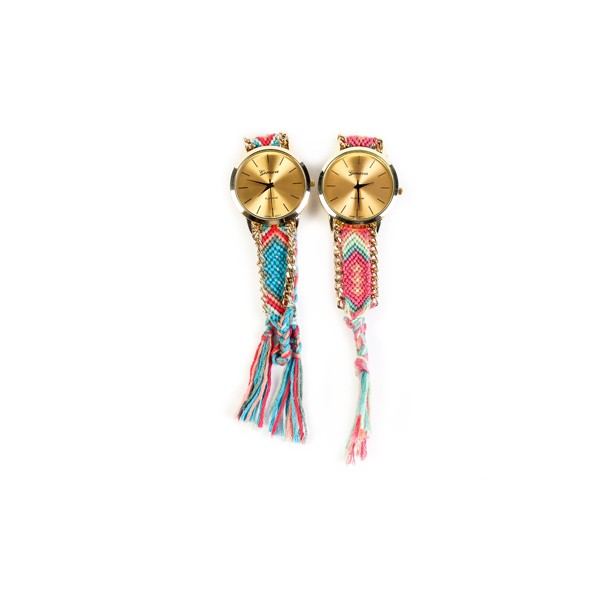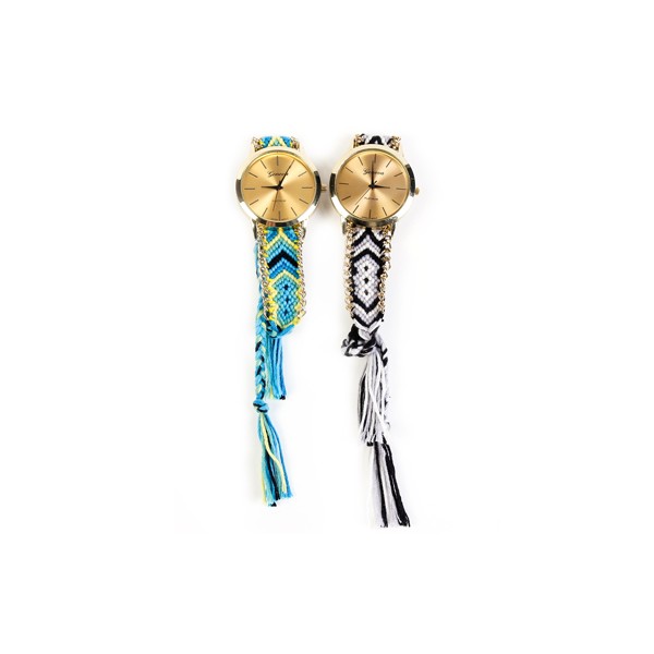 Original reloj etnio con pulsera de tela presentado en bolsa transparente de PVC