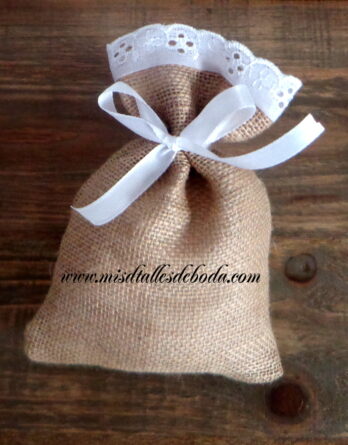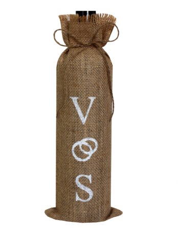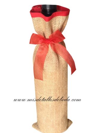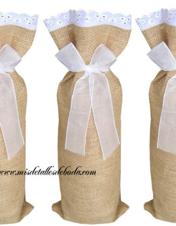 Exclusivo saco para botella de vino de yute para presentar botellas recuerdos de boda.